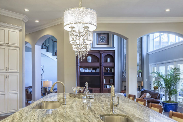 5、一般大厅使用的水晶灯离地最少为200-210㎝,如果是复式或跃层设计,那大厅中灯具的设置不能低于二楼。